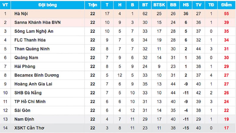 Kết quả vòng 22 Nuti Cafe V-League 2018. Ảnh: Vietnamnet.vn