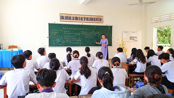 Giờ ôn tập chuẩn bị thi tốt nghiệp THPT của cô trò Trường THPT Phan Văn Trị, huyện Phong Điền. Ảnh: B.Ng