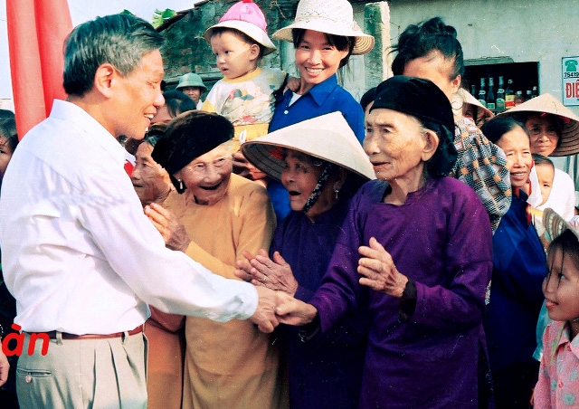 | Tổng Bí thư Lê Khả Phiêu trò chuyện với nhân dân làng Kim Bảng (Hà Nam) năm 2000. Nguồn: danviet.vn |