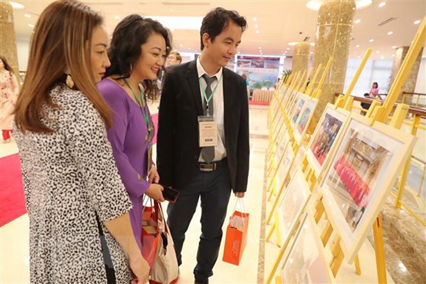 Kiều bào tham quan trưng bày ảnh về hoạt đồng của người Việt Nam ở nước ngoài. (Ảnh: Lâm Khánh/TTXVN)