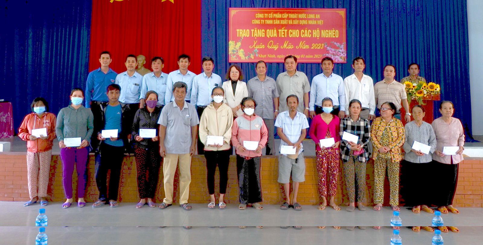 Theo đó, Công ty Cổ phần Cấp thoát nước Long An cùng các đơn vị tài trợ (Công ty TNHH Sản xuất và Xây dựng Nhân Việt; Công ty TNHH Sản xuất Thương mại nhựa châu Âu; Công ty TNHH Đầu tư xây dựng - Cấp thoát nước và môi trường Waseen) trao tặng 346 phần quà cho các hộ nghèo tại huyện Tân Hưng (100 phần); Thủ Thừa (16 phần); Bến Lức (89 phần) và Tân Trụ (141 phần). Mỗi phần quà trị giá 500.000 đồng. Tổng kinh phí thực hiện chương trình 173 triệu đồng.