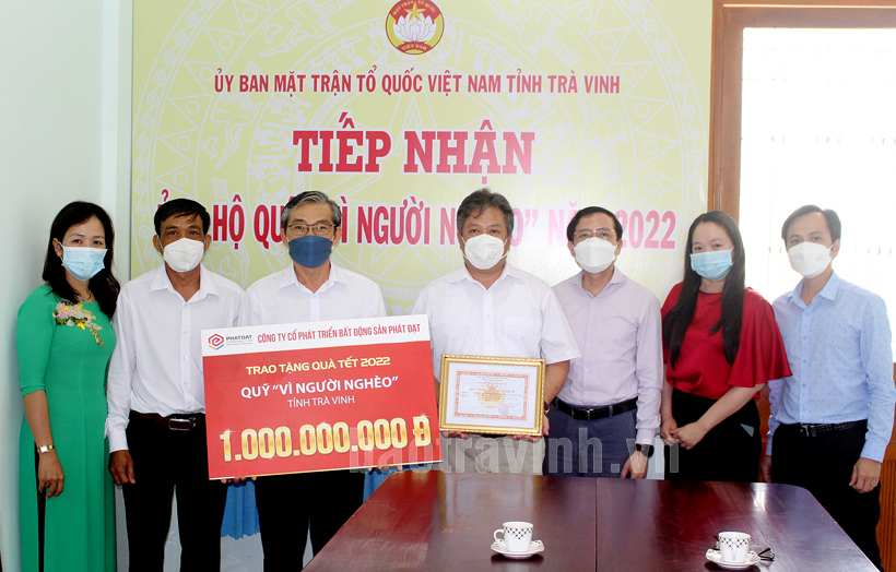 Tại buổi tiếp nhận nguồn lực, Ngô Hải Thanh, Tổng Giám đốc Công ty Cổ phần đầu tư năng lượng Phát Đạt, chia sẻ những khó khăn với tỉnh Trà Vinh qua một năm tập trung phòng, chống dịch bệnh Covid-19. Đơn vị trích 01 tỷ đồng ủng hộ chương trình “Tết vì người nghèo năm 2022” với mong muốn thông qua UBMTTQ Việt Nam tỉnh trao quà cho hộ nghèo, cận nghèo, khó khăn trên địa bàn tỉnh dịp tết Nguyên đán Nhâm Dần năm 2022.