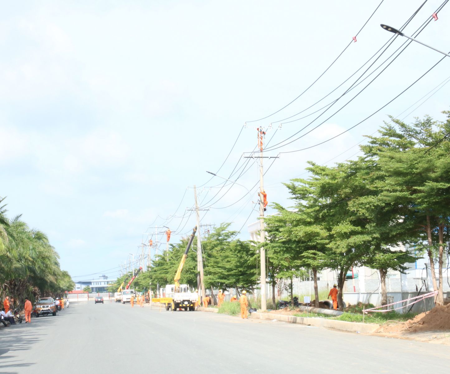 Nhân viên điện lực tổ chức khắc phục