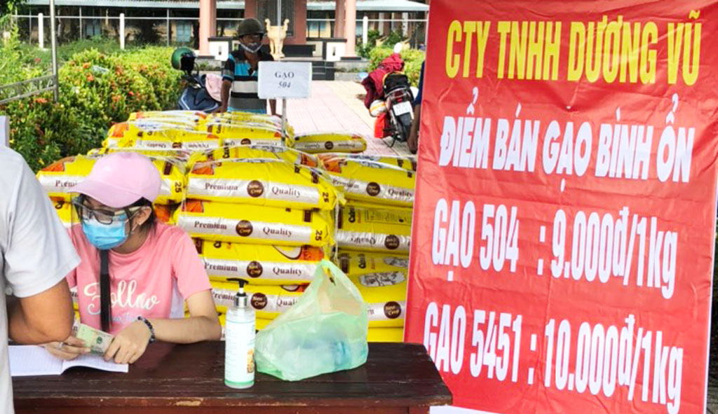 Doanh nghiệp chế biến, xuất khẩu gạo Dương Vũ, xã Bình Thạnh, huyện Thủ Thừa, tỉnh Long An là đơn vị tiên phong triển khai điểm bán gạo bình ổn giá cho tất cả người dân có nhu cầu với mức giá cố định 9.000 – 10.000 đồng/kg (gạo 504 giá 9.000 đồng; 5451 giá 10.000 đồng). Đây là loại gạo vụ mới, chất lượng tốt.