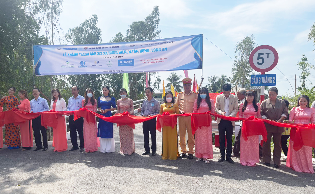 Cầu 3/2 bắc qua kênh Cái Bát, xã Hưng Điền, huyện Tân Hưng dài 40m, rộng 4m, tải trọng 5 tấn đã hoàn thành sau 3,5 tháng thi công. Cầu giúp giao thương hàng hóa dễ dàng hơn, học sinh yên tâm đến trường là ước mơ của người dân ở xã biên giới Hưng Điền. Trong đó, Công ty TNHH Xử lý chất thải Việt Nam hỗ trợ 200 triệu đồng, đồng thời tặng 50 phần quà trị giá 40 triệu đồng cho người dân có hoàn cảnh khó khăn trong ngày khánh thành cầu.