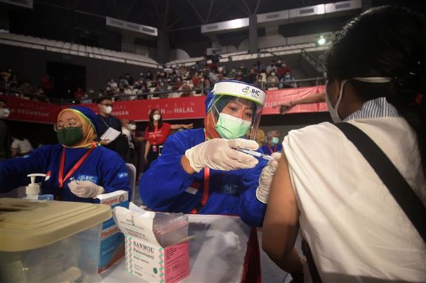 Nhân viên y tế tiêm vaccine phòng COVID-19 cho người dân tại Jakarta, Indonesia, ngày 16/6/2021. (Ảnh: THX/TTXVN)