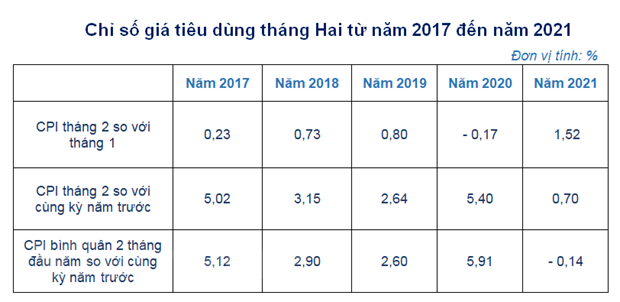 CPI tháng Hai tăng 1,52% và đạt mức cao nhất trong 8 năm qua