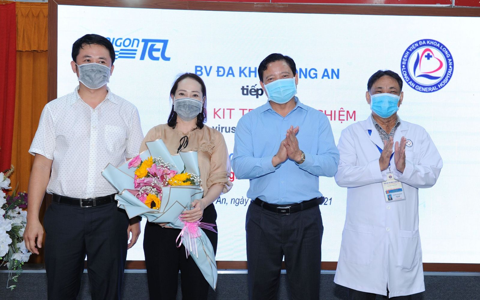 Công ty Cổ phần Công nghệ viễn thông Sài Gòn trao tặng Bệnh viện Đa khoa Long An 1.000 Kit test xét nghiệm vi-rút SARS-CoV-2
