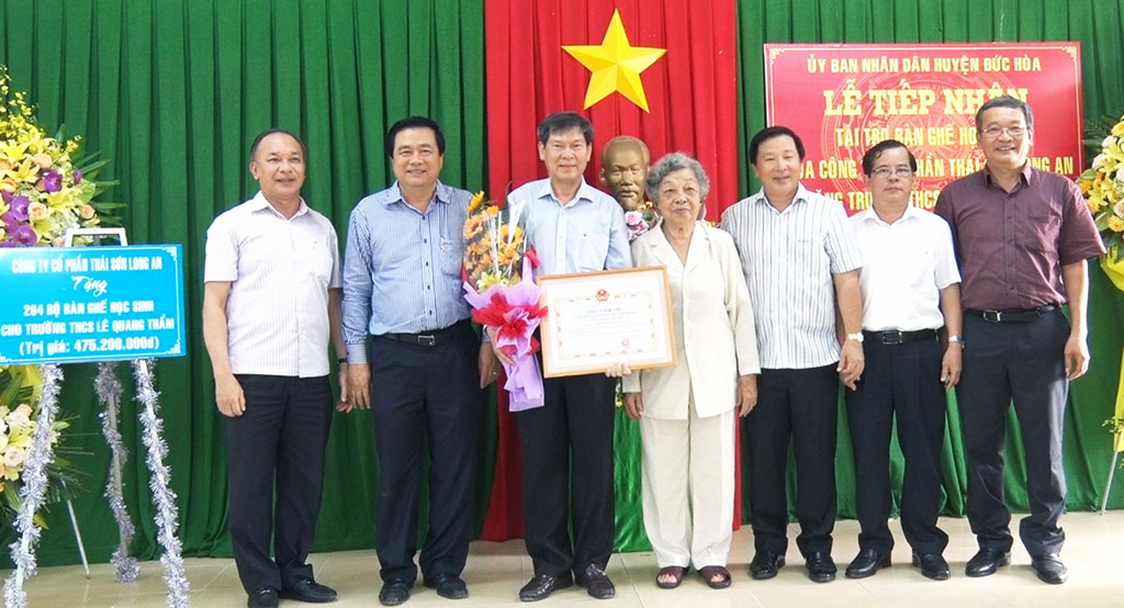 Công ty cổ phần Thái Sơn Long An tặng 264 bộ bàn ghế cho Trường THCS Lê Quang Thẩm nhằm tạo điều kiện cho học sinh học tập. Tổng kinh phí của gói tài trợ là 475.200.000 đồng.