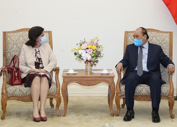 Thủ tướng Nguyễn Xuân Phúc tiếp bà Lianys Torres Rivera, Đại sứ Đặc mệnh Toàn quyền Cộng hòa Cuba tại Việt Nam. (Ảnh: Thống Nhất/TTXVN)