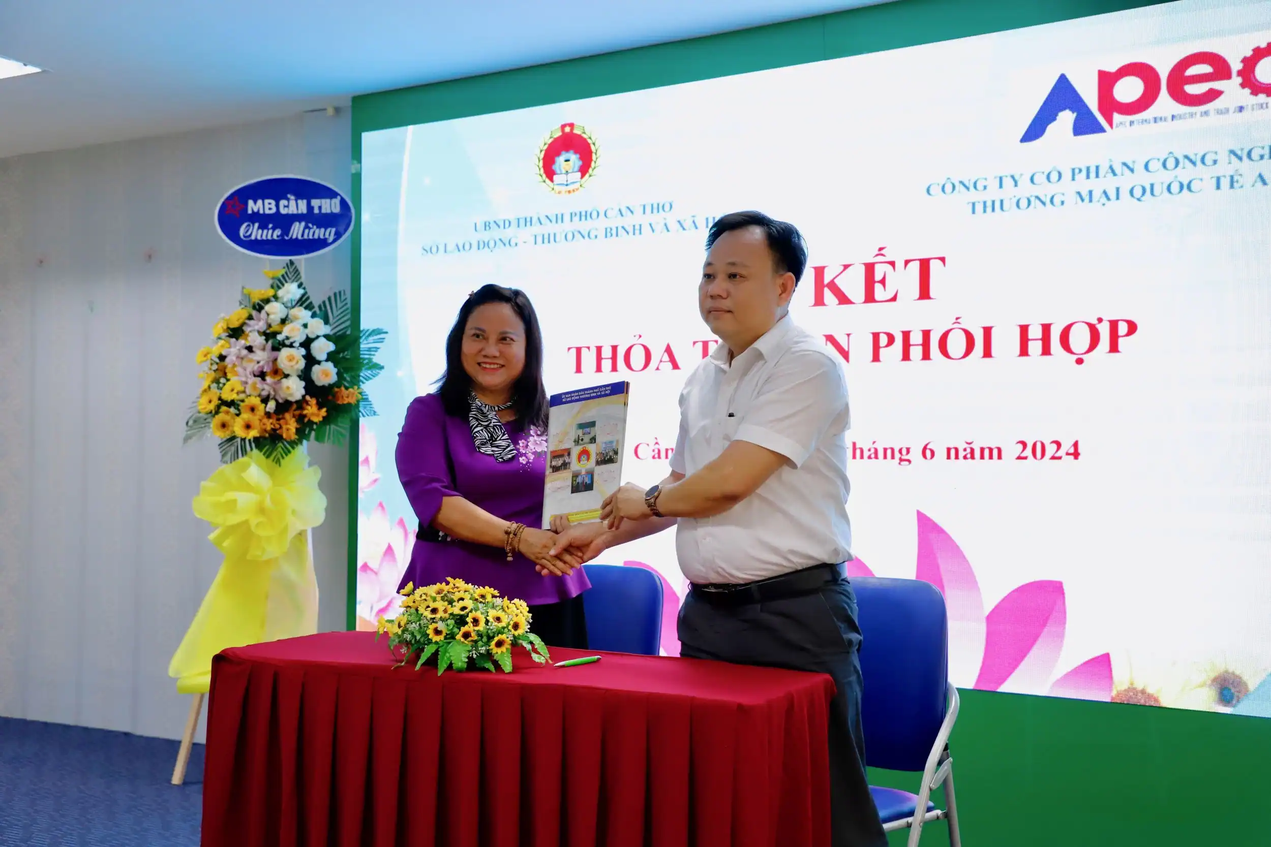Lãnh đạo Sở Lao động - Thương binh và Xã hội thành phố ký kết thỏa thuận phối hợp thực hiện hợp đồng đưa lao động Việt Nam đi làm việc ở nước ngoài tại TP Cần Thơ năm 2024 với các doanh nghiệp.