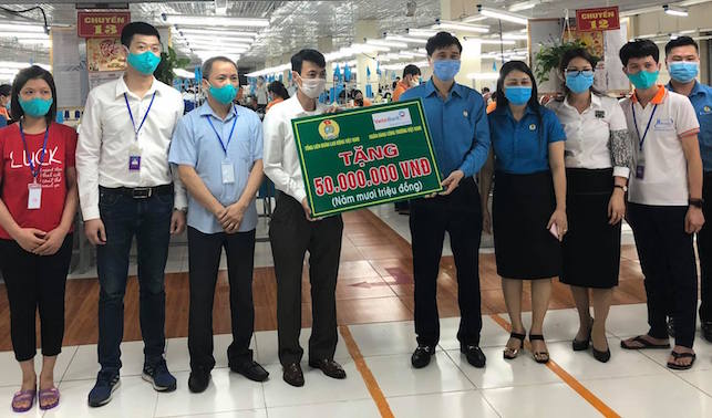 Thay mặt Đoàn Chủ tịch Tổng LĐLĐ Việt Nam, Phó Chủ tịch Tổng LĐLĐ Việt Nam đã trao 50 triệu đồng và 50 suất quà cho CNLĐ có hoàn cảnh khó khăn của công ty.