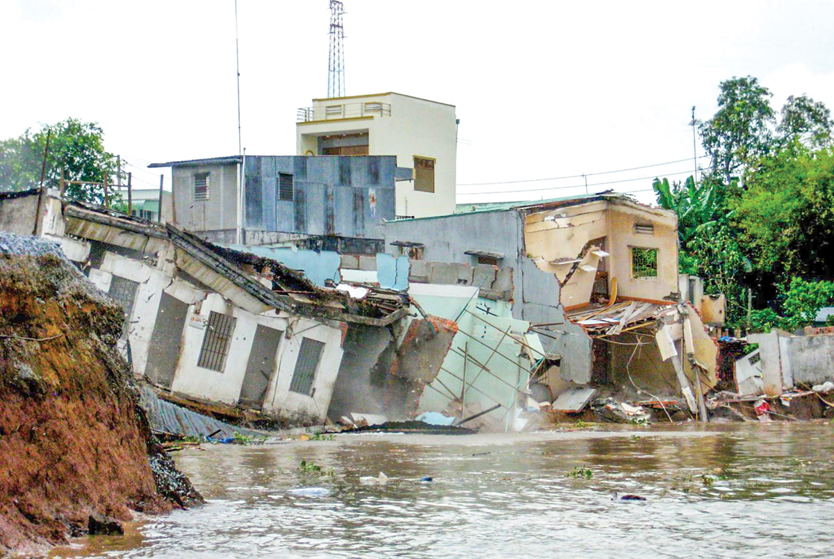 Sạt lở ngày một nghiêm trọng xảy ra ở ĐBSCL do thay đổi dòng chảy sông MeKong. Trong ảnh: Hiện trường sạt lở bờ sông Hậu tại An Giang.