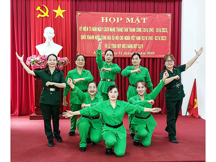 CLB đang tập 5 tiết mục văn nghệ để chuẩn bị phục vụ cho Ngày hội Đại đoàn kết toàn dân tộc của phường An Hòa vào ngày 3-11. Các tiết mục của CLB luôn phong phú về nội dung và hình thức thể hiện, từ ca khúc cách mạng ca ngợi Đảng, Bác Hồ, đến truyền tải tình yêu quê hương, đất nước. Đạo cụ, trang phục được CLB đầu tư, mua sắm đầy đủ từ trang phục bộ đội, áo bà ba, áo dài… đến cờ, quạt, dù, hoa, khăn, nón…