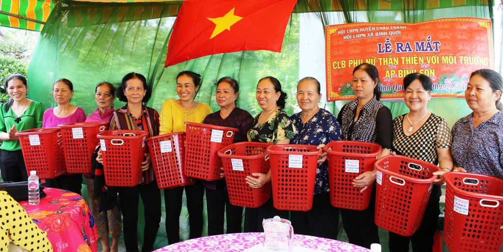 Tặng sọt rác cho các thành viên Câu lạc bộ Phụ nữ thân thiện với môi trường xã Bình Quới