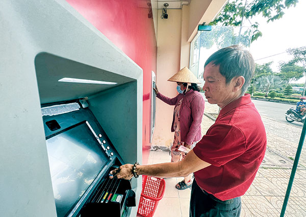 Người dân rút tiền tại trụ ATM của Agribank Chi nhánh Cờ Ðỏ vào những ngày giáp Tết.