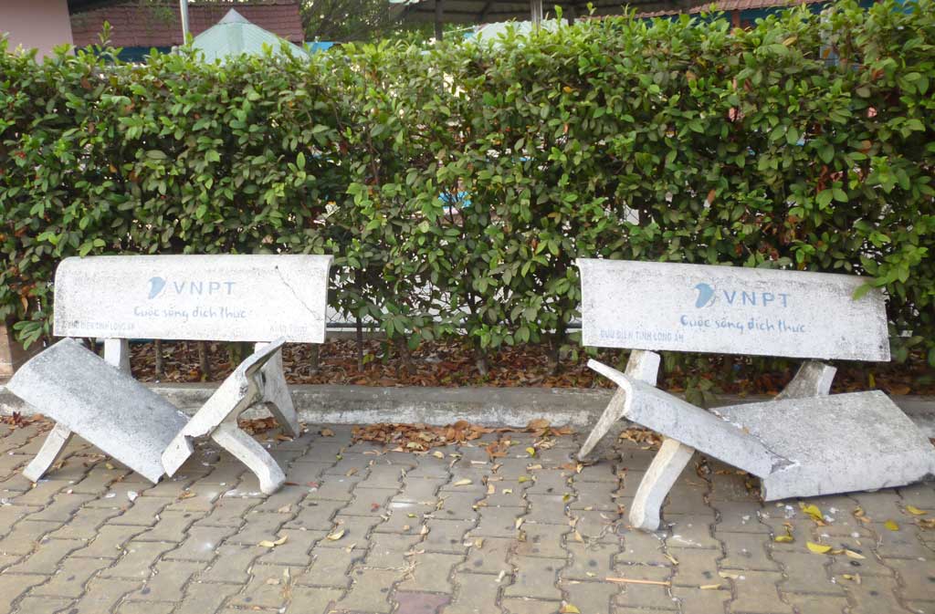 Điều thật đáng trách nữa là, công viên có nhiều ghế đá do các doanh nghiệp và nhà hảo tâm ủng hộ để phục vụ công cộng, đã bị ai đó đập vỡ đôi hoặc vỡ nát. Hình ảnh xấu xí này đã từng xảy ra trước đây, khi thành phố còn là thị xã, và băng ghế đá đặt ở khu vực xung quanh sân vận động.