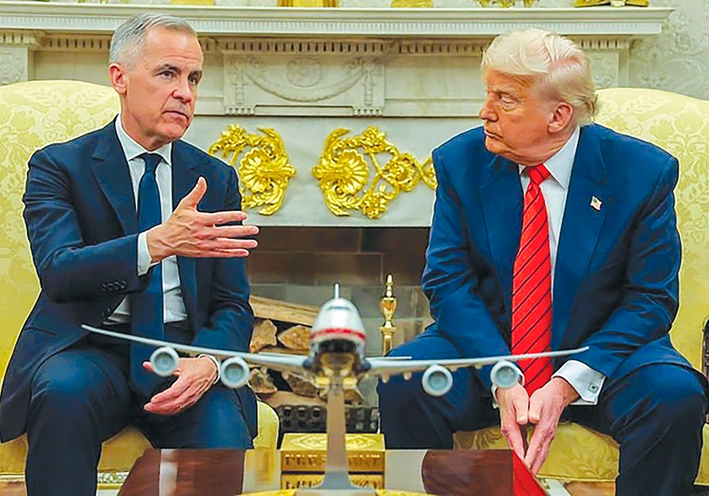 Tổng thống Mỹ Trump (phải) và Thủ tướng Canada Carney tại Nhà Trắng hồi tháng 5-2025. Ảnh: AFP
