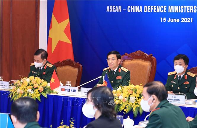 Chiều 15/6, Cuộc gặp không chính thức Bộ trưởng Quốc phòng ASEAN - Trung Quốc được tổ chức theo hình thức trực tuyến dưới sự đồng chủ trì của Thiếu tướng Pehin Datu Lailaraja Dato Paduka Seri Haji Awang Halbi bin Haji Md Yussof, Bộ trưởng Bộ Quốc phòng thứ 2 Brunei, cùng Thượng tướng Ngụy Phượng Hòa, Bộ trưởng Bộ Quốc phòng Trung Quốc.