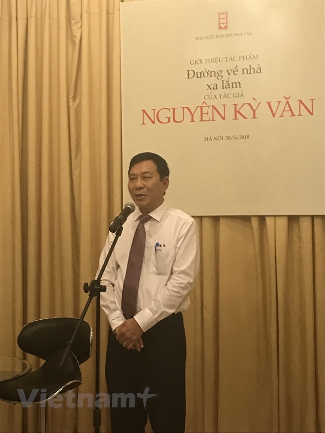 Tác giả giới thiệu sách tại buổi ra mắt. (Ảnh: Mỹ Bình/Vietnam+)