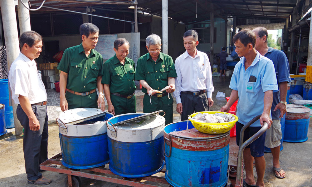 Lãnh đạo hội đến tham quan DNTN Sang Duyên do cựu chiến binh Ngô Hoài Phong làm chủ. Ảnh: Trung Dũng