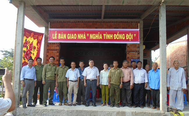 | Hội Cựu chiến binh huyện Gò Quao (tỉnh Kiên Giang) trao nhà đồng đội cho CCB Trần Văn Khởi ở xã Định An đang gặp khó khăn về nhà ở. Ảnh: Phương Nghi. |