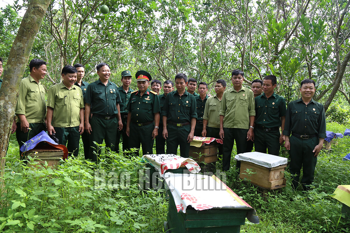 | Lãnh đạo Hội CCB tỉnh Hoà Bình và cán bộ, hội viên CCB huyện Kim Bôi thăm quan mô hình phát triển kinh tế của CCB Nguyễn Văn Thập, xã Vĩnh Tiến. (Nguồn: baohoabinh.com.vn) |