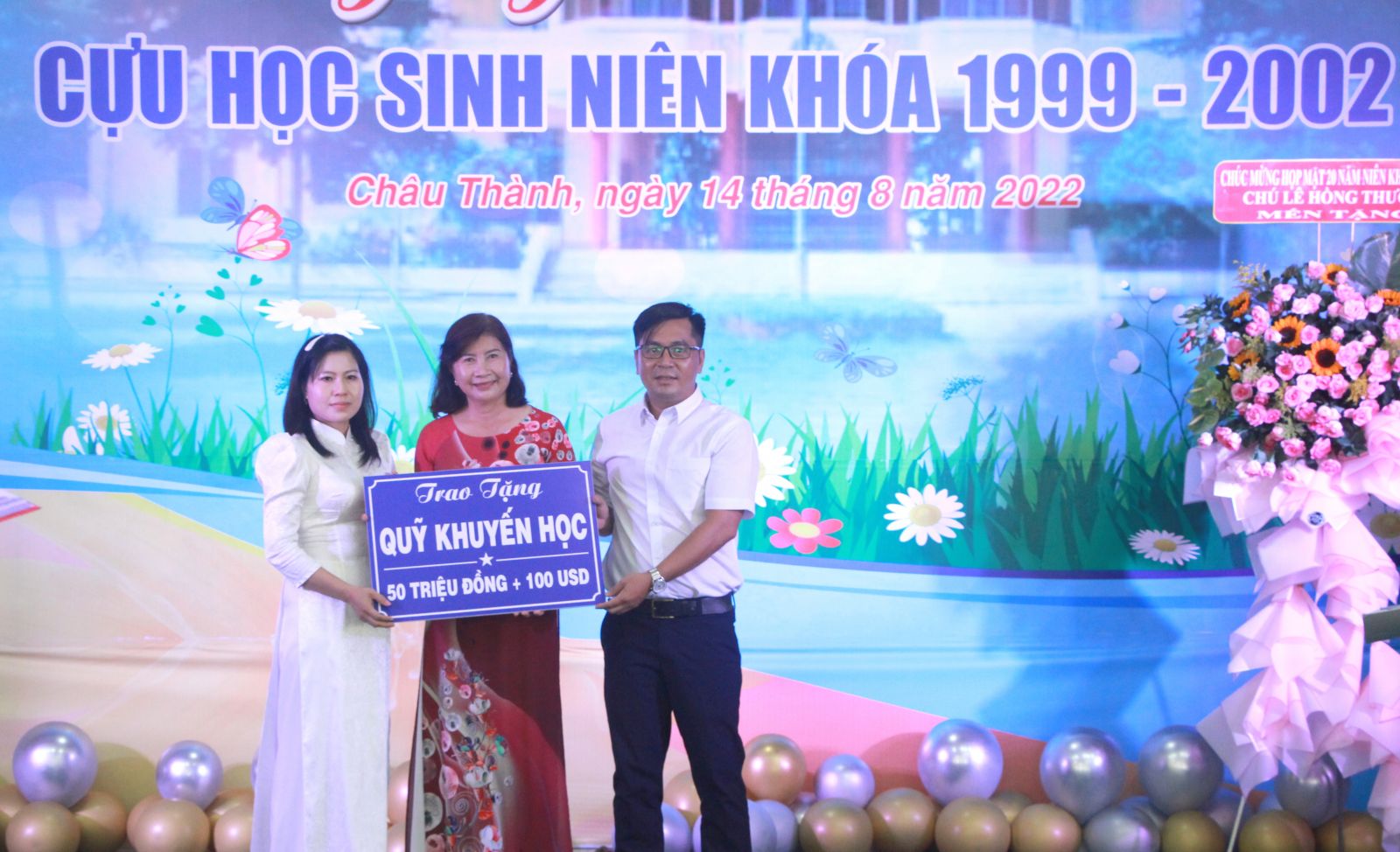 Tại buổi lễ, đại diện cựu học sinh niên khóa 1999 - 2002 đã trao tặng cho Quỹ khuyến học của trường 50 triệu đồng và 100 USD, đồng thời tặng cho giáo viên trường 1 máy lọc nước trị giá 10 triệu đồng.