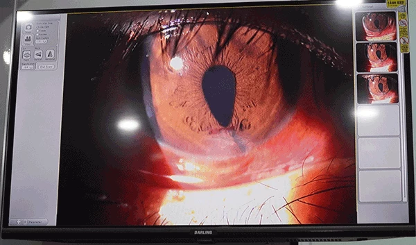 Hình ảnh giác mạc bệnh nhân bị thủng.