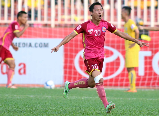 Duy Long ăn mừng bàn thắng vào lưới Thanh Hóa. Ảnh: N.K
