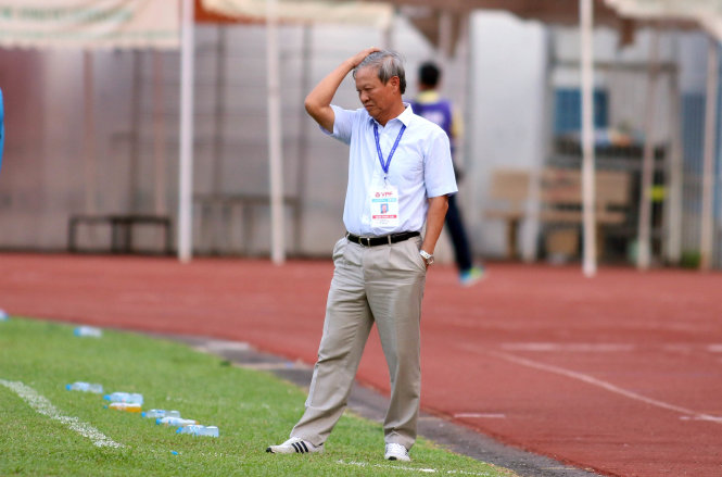 Sự bất lực của HLV Lê Thụy Hải (FLC Thanh Hóa). Ảnh: N.K
