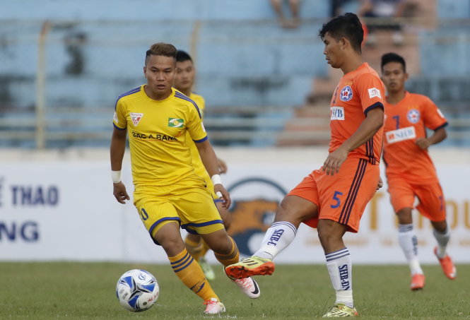SHB Đà Nẵng (phải) và SLNA cầm chân nhau 1-1. Ảnh: Thắng Lê