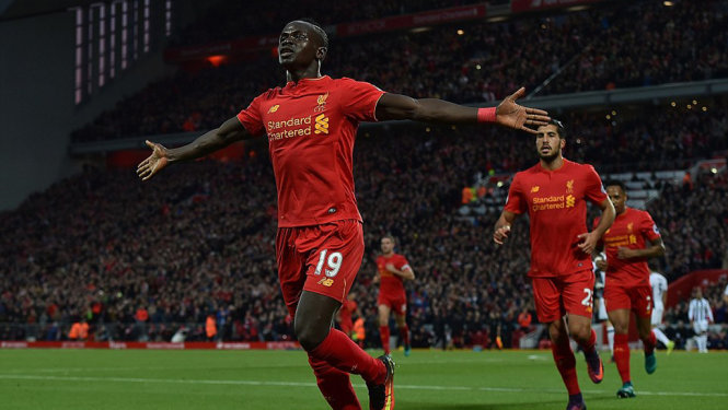 Niềm vui của Mane sau khi mở tỉ số cho Liverpool. Ảnh: Getty Images