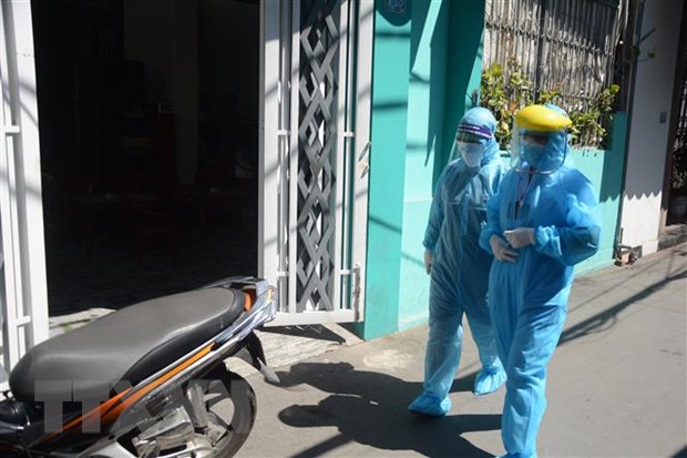 Nhân viên y tế Đà Nẵng tiến hành truy vết, khoanh vùng điều tra lịch sử dịch tễ ở khu vực dân cư, nơi sinh sống của bệnh nhân COVID-19. (Ảnh: Văn Dũng/TTXVN)