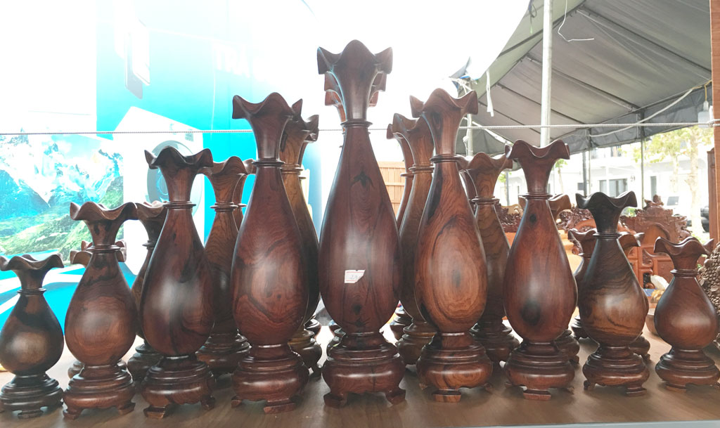 Hòa cùng sắc đỏ, vàng của câu đối, hoa lá mùa xuân trong ngày tết, người dân còn mua nhiều món vật dụng trang trí nội thất bằng gỗ được chạm trổ công phu như tủ thờ, bộ ghế salon. Đặc biệt hơn hết là các món hàng làm vật trang trí được chạm khắc tinh vi như lục bình, hoa, linh vật,... Nhân viên bán hàng đồ gỗ mỹ nghệ Trần Tướng (cửa hàng phục vụ tết trong Trung tâm Thương mại Vincom) cho biết, các món hàng làm vật trang trí như tượng hình Phật, tượng Phước Lộc Thọ, rồng, cá, chuột,... được người dân chọn lựa khá nhiều. Anh Minh Khánh, ngụ phường 6, TP.Tân An, ngắm nghía, chọn lựa 1 cặp lục bình bằng gỗ. Anh Khánh cho biết: “Tôi muốn mua 1 cặp lục bình về nhà, trước là mong muốn năm mới luôn được lộc đầy và bình an suốt năm, sau đó bài trí phòng khách cho đẹp”.