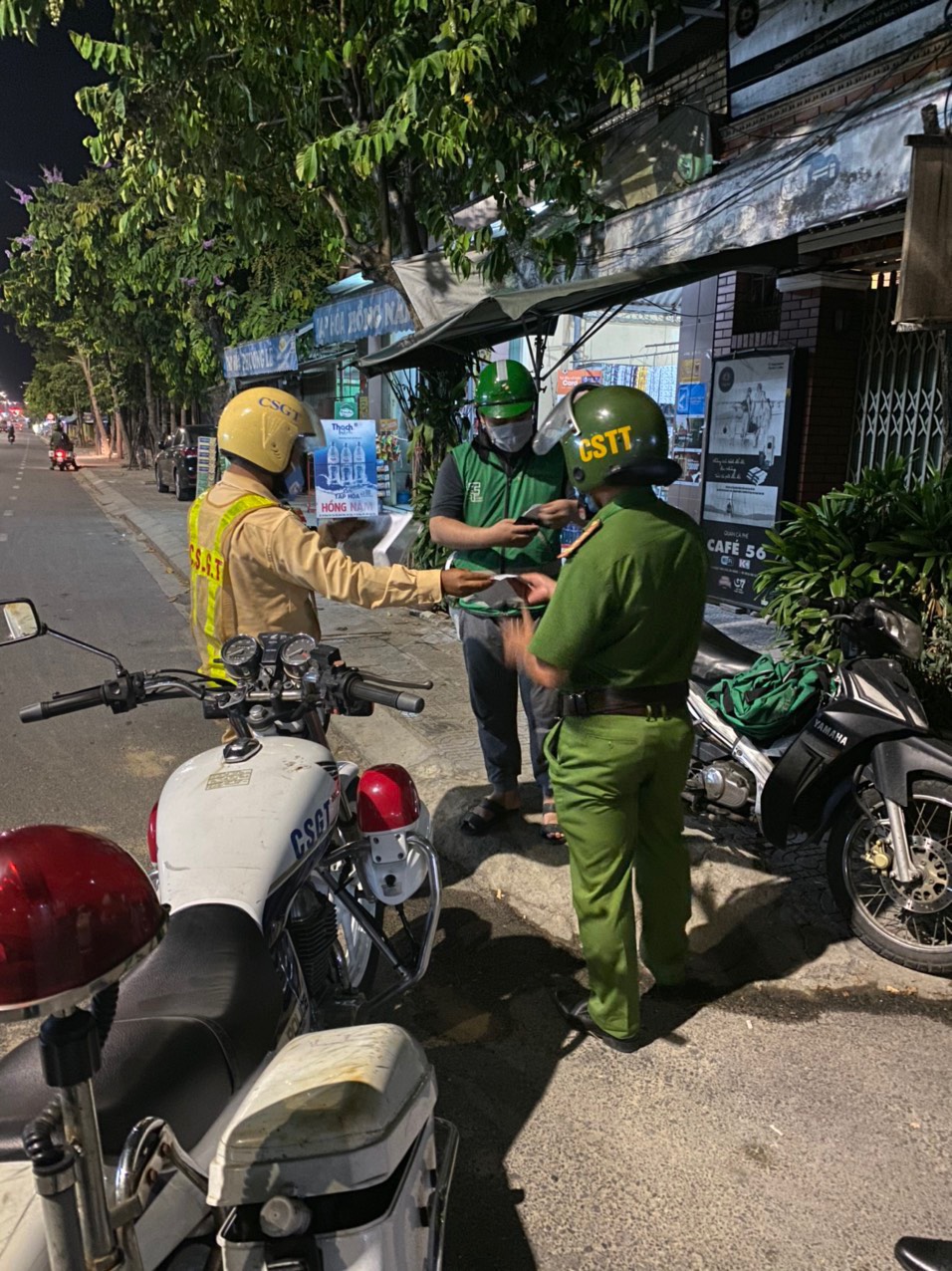 | Lực lượng CSGT&TT kiểm tra, xử lý vi phạm quy định phòng, chống dịch COVID-19 đối với tài xế xe Grap. |