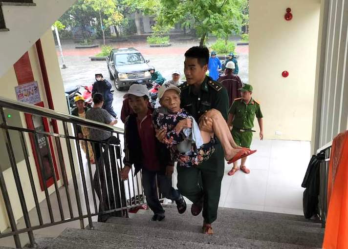 | Các cán bộ, chiến sĩ tại TP Đà Nẵng tham gia đưa người dân di tản tránh bão số 4. |