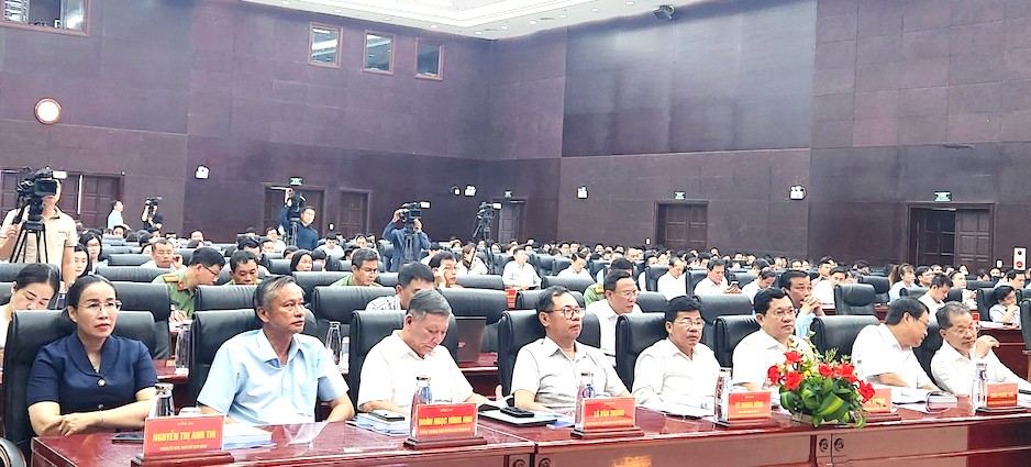 | Các đại biểu tham dự Hội nghị ở điểm cầu chính tại Trung tâm hành chính TP Đà Nẵng. |