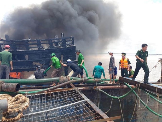 Một vụ cháy tàu cá. (Ảnh minh họa: Trần Thị Thu Hiền/TTXVN)