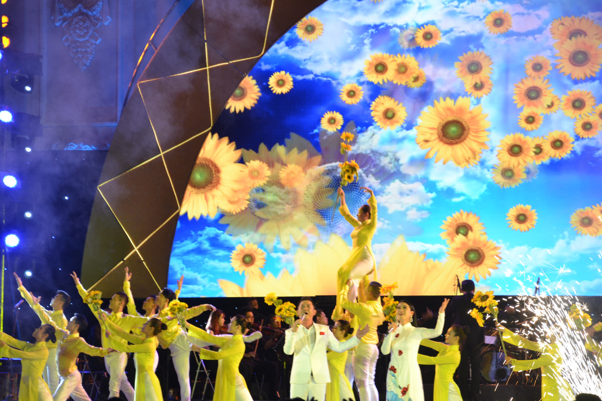 Tối 2/2, tại sân khấu trước Nhà hát TP. Hồ Chí Minh (Quận 1), Thành ủy - HĐND - UBND - Ủy ban MTTQ Việt Nam TP. Hồ Chí Minh đã tổ chức chương trình nghệ thuật đặc biệt “Ngàn hoa dâng Đảng” chào mừng 90 mùa Xuân tươi thắm của Đảng Cộng sản Việt Nam (3/2/1930 - 3/2/2020).