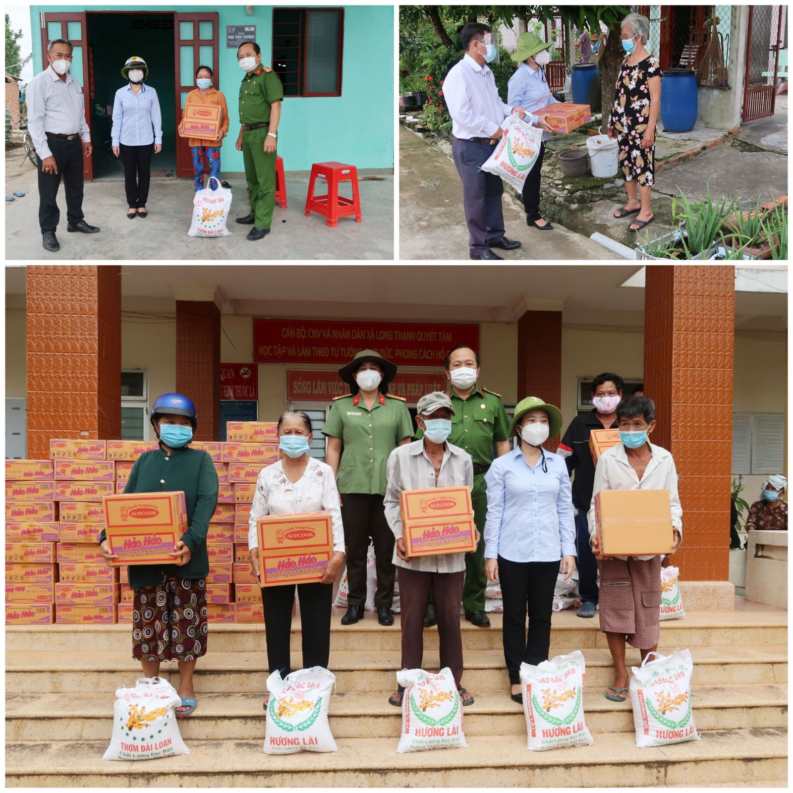 Đoàn trao tặng 200 phần quà. Mỗi phần quà gồm 10kg gạo và 1 thùng mì gói được tặng cho người nghèo, thương binh, người già có hoàn cảnh khó khăn của 4 xã, gồm: Mỹ Thạnh, Mỹ Lạc, Long Thuận và Long Thạnh. Số quà trên được cô Huỳnh Thị Thu Năm vận động từ Công an Bến Lức phối hợp Công an huyện Thủ Thừa tổ chức trao tặng.