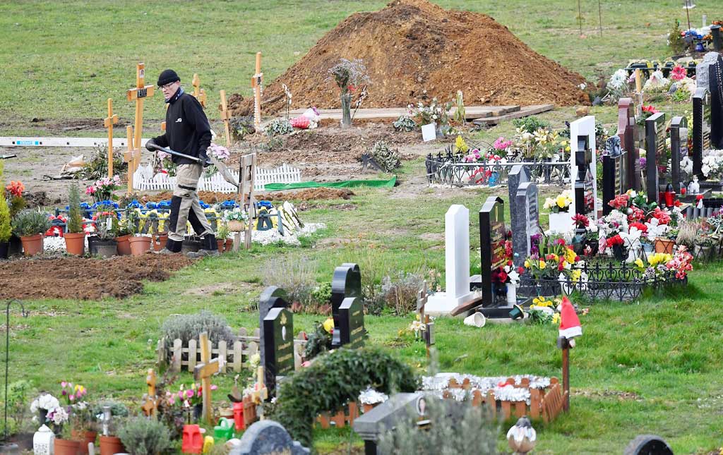 Một công nhân đào huyệt tại một nghĩa trang ở London (Anh) vào ngày 11/1