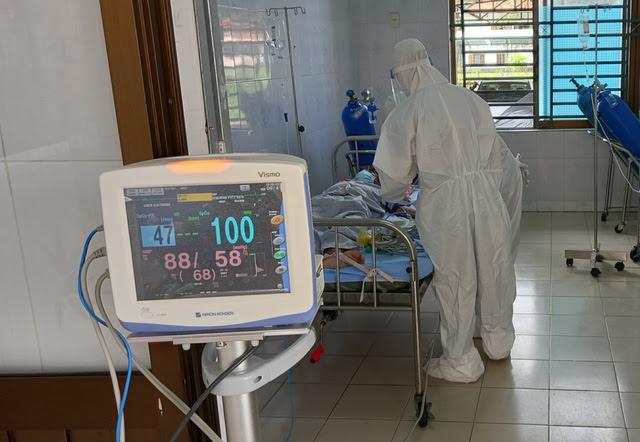 Các bác sĩ từ Bệnh viện Chợ Rẫy đến hỗ trợ chăm sóc, điều trị cho bệnh nhân tâm thần nhiễm COVID-19 tại Bệnh viện Tâm thần TW phải hỗ trợ thở máy. Ảnh: Hà Văn Đạo
