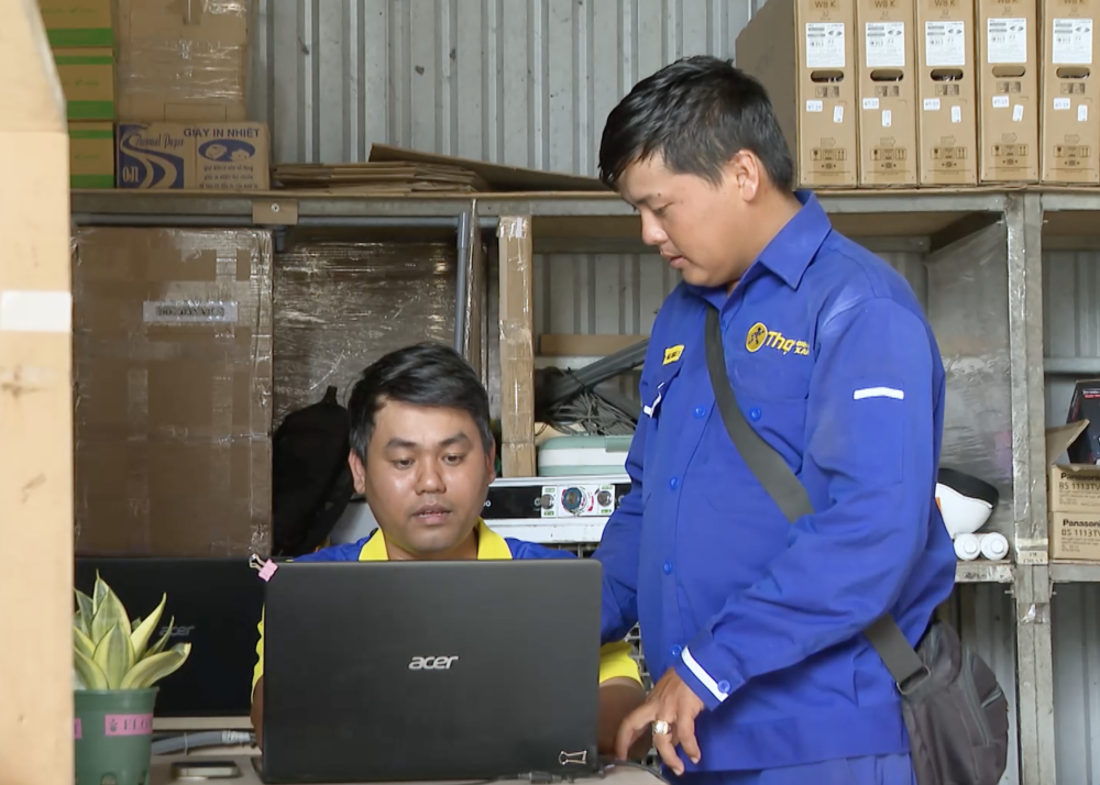 Trong quá trình làm việc, anh Võ Quốc Thịnh (phải) được sự quan tâm, hỗ trợ của đồng nghiệp và cấp trên