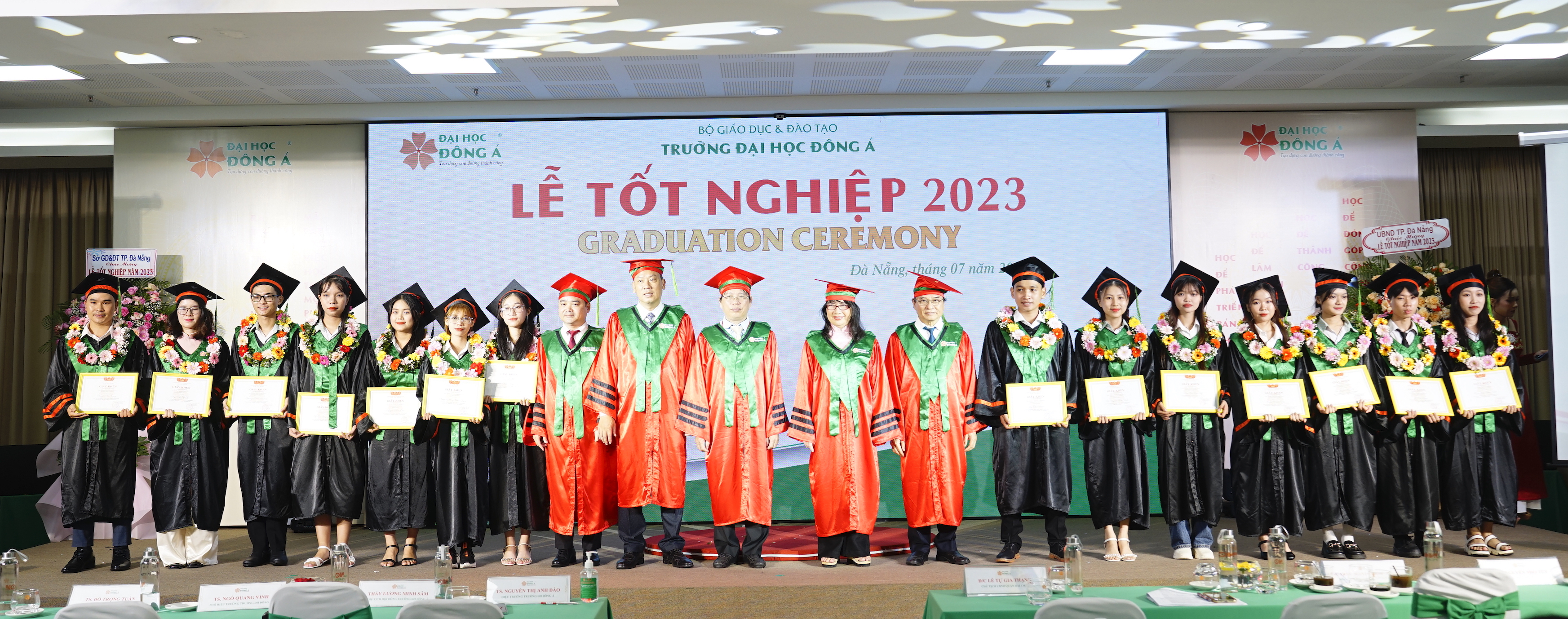 Lễ Tốt nghiệp năm 2023 của Đại học Đông Á diễn ra trong 4 ngày từ 8/7 – 12/7 với 7 phiên tổ chức trọng thể qua hình thức trực tiếp và trực tuyến. Trong đó, Nhà trường vinh danh và trao bằng tốt nghiệp cho 30 tân thạc sĩ ngành Quản trị kinh doanh (QTKD) và 2.579 tân kỹ sư, cử nhân ở 23 ngành đào tạo bậc đại học thuộc các khối Kinh tế - Du lịch, Kỹ thuật, Khoa học sức khoẻ, Ngôn ngữ, Sư phạm.