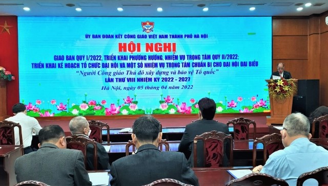 Đại hội đại biểu “Người Công giáo Thủ đô xây dựng và bảo vệ Tổ quốc” lần thứ VIII dự kiến tổ chức vào cuối tháng 10 hoặc đầu tháng 11/2022. Để thiết thực thi đua lập thành tích cao nhất chào mừng sự kiện này, Ban Thường trực Ủy ban Đoàn kết Công giáo Việt Nam thành phố Hà Nội sẽ phối hợp với các cơ quan báo chí tuyên truyền sâu rộng tới toàn thể đồng bào Công giáo trên địa bàn thành phố Hà Nội về ý nghĩa Đại hội; cố vũ, động viên đồng bào Công giáo phát huy truyền thống “Đồng hành cùng dân tộc” và đường hướng của Hội đồng Giám mục Việt Nam năm 1980 “Sống Phúc âm giữa lòng dân tộc để phục vụ hạnh phúc của đồng bào”, đẩy mạnh thi đua yêu nước bằng những việc làm cụ thể và thiết thực, gắn với phong trào thi đua xây dựng “Xứ, họ đạo tiên tiến”./.