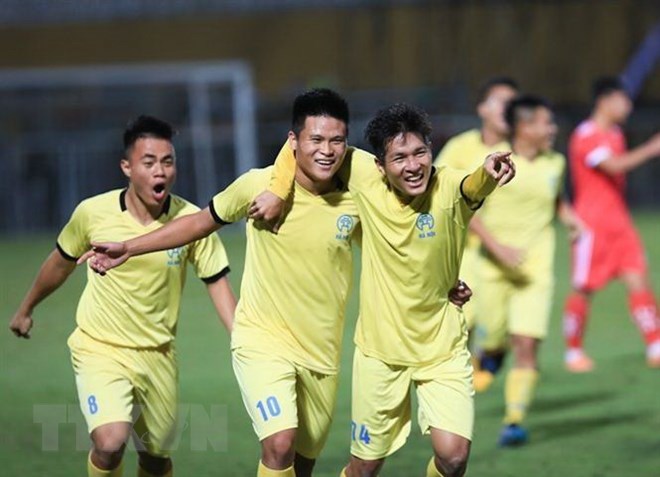 Trong trận chung kết môn bóng đá nam tại Đại hội Thể thao toàn quốc, đội Hà Nội thắng với tỷ số 2-0, giành huy chương vàng, đội Nghệ An giành huy chương bạc. (Ảnh: Trọng Đạt/TTXVN)