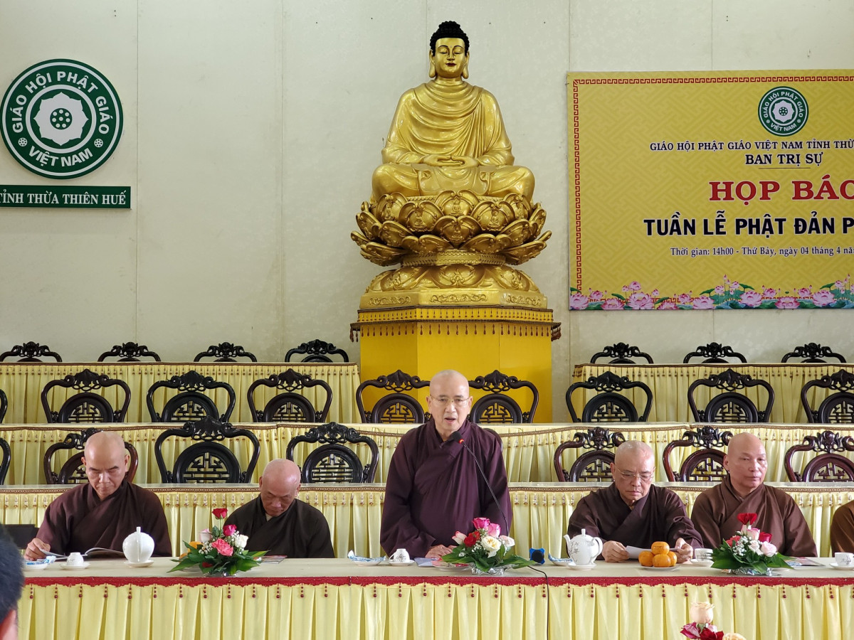 Chiều 11/5, Ban trị sự GHPGVN tỉnh Thừa Thiên - Huế đã tổ chức họp báo thông tin tuần đại lễ Phật đản năm 2024 (Phật lịch 2568), diễn ra từ ngày 15 - 22/5 (08 - 15/4 âm lịch) với chuỗi sự kiện nghi lễ, lễ hội truyền thống Phật giáo đặc sắc tại trên địa bàn tỉnh Thừa Thiên - Huế.