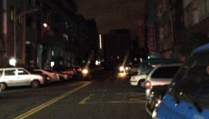 Đường phố vốn sầm uất tại Đài Loan tối thui vì cúp điện trong tối 15/8 - Ảnh: Twitter