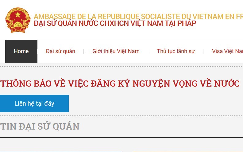 Đại sứ quán Việt Nam tại Pháp thông báo đăng ký nguyện vọng về nước